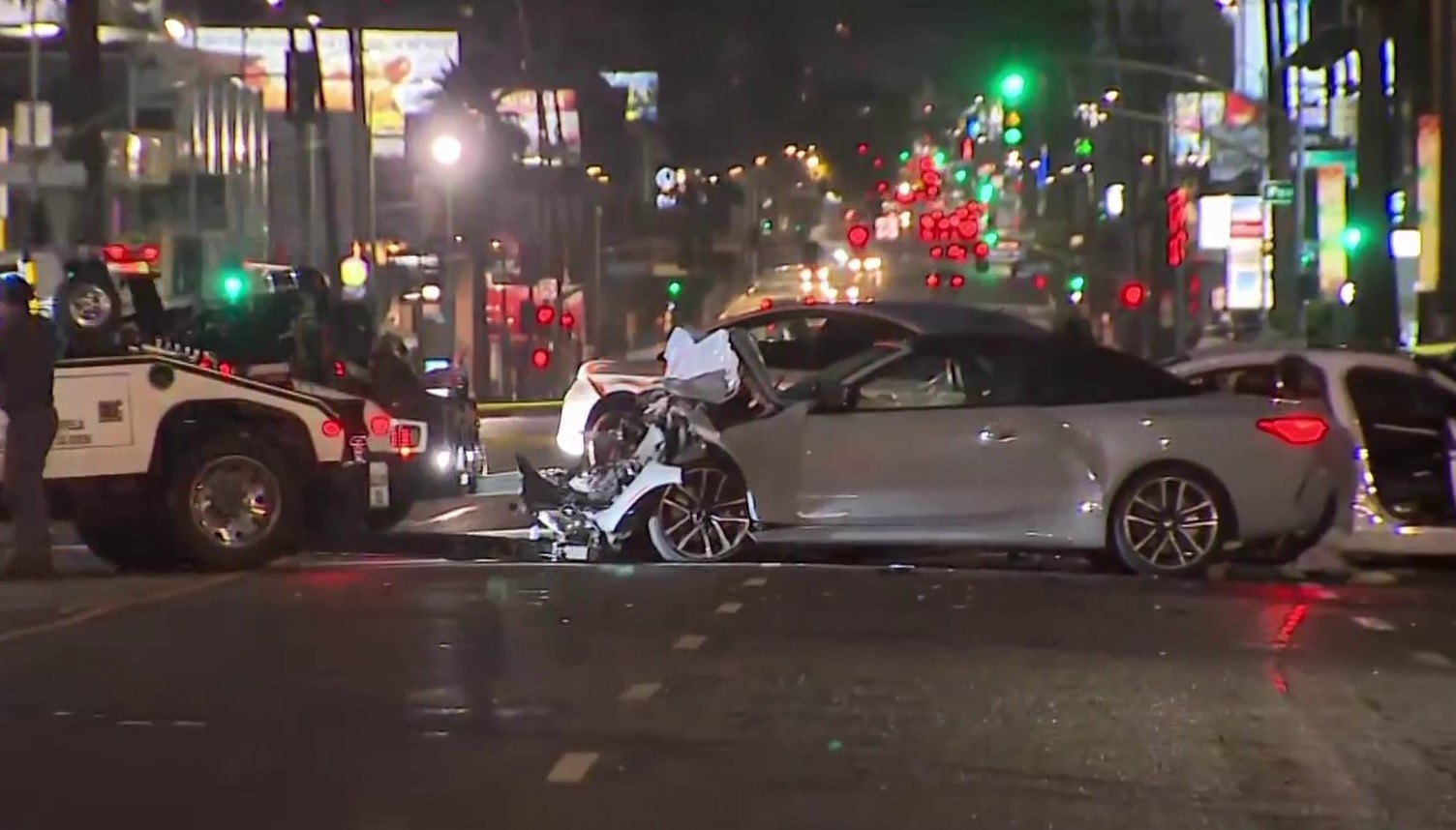 Part of Sunset Boulevard near Formosa Avenue was shut down for the crash investigation. Officers responded at about 2:30 a.m. to the site of the chain-reaction crash, which involved several parked vehicles.