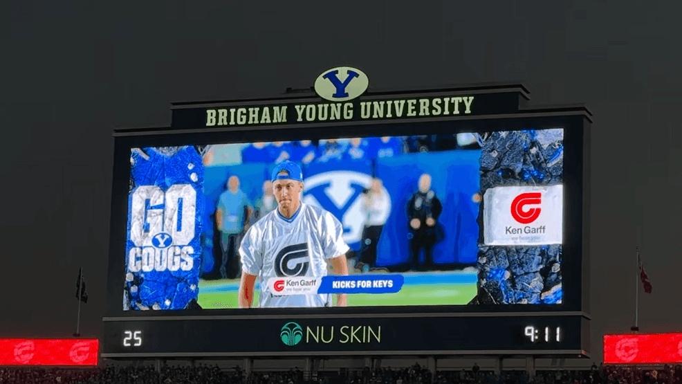 Easton made a field goal from the Ken Garff logo at the 25-yard line at LaVell Edwards Stadium, winning the car as a prize.