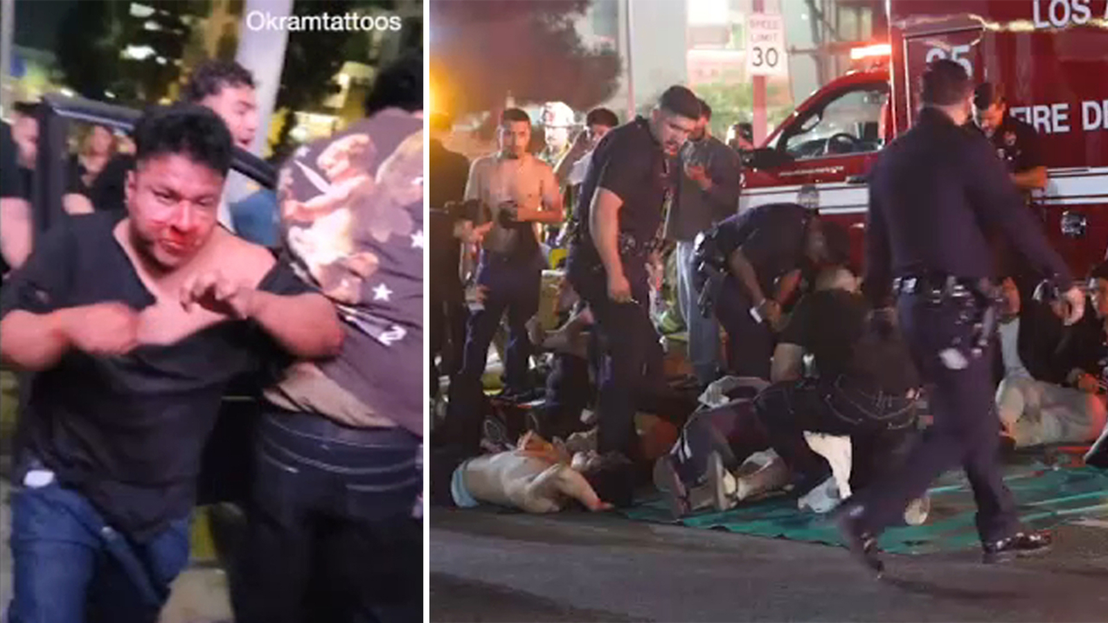 "When you review the video, it's clear that he drove that vehicle down a sidewalk and around a bus. It was an intentional act," Capt. Ben Fernandes with LAPD said. "Security attempted, from the club, attempted to detain him and handcuffed him, at which time an additional suspect, not related to our driver, came from across the street, armed with a firearm, and then shot our suspect in the buttocks."