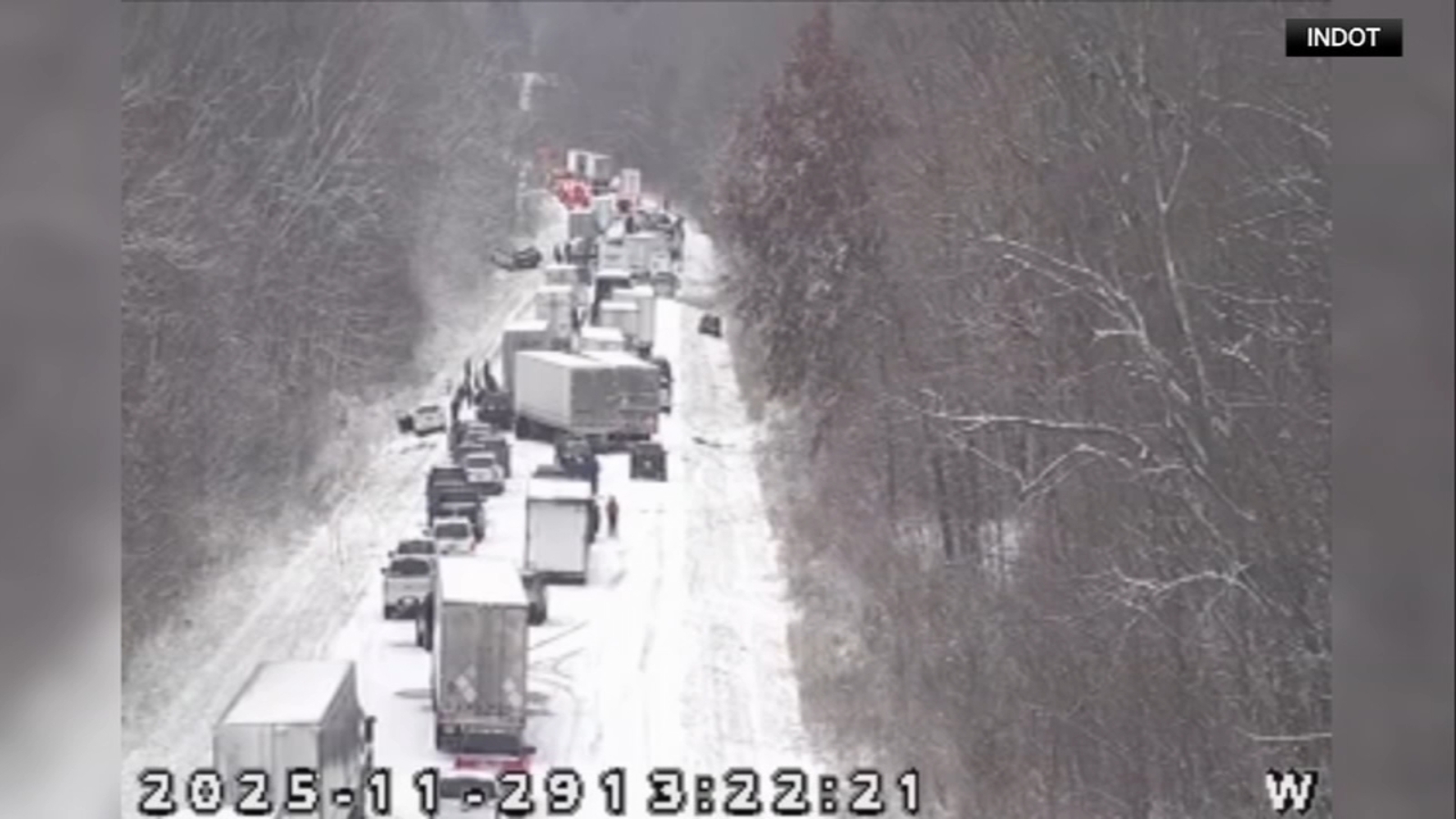 In Putnamville, Indiana, heavy snow caused a chain-reaction crash on Interstate 70 involving 45 vehicles, according to the Indiana State Police Department.