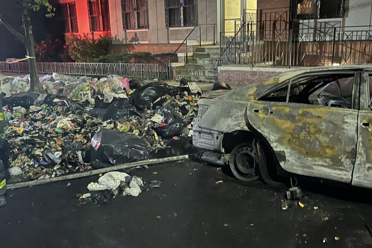 The incident occurred at about 7 p.m. EST at 955 Westchester Avenue of the Bronx, where firefighters responding to multiple calls of a fire found several cars and nearby piles of garbage ablaze.