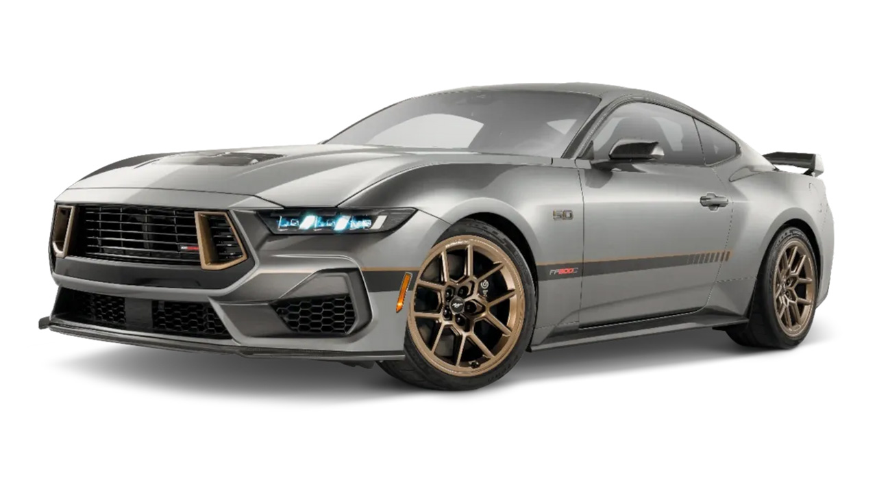 The package is also equipped with a Mustang Dark Horse spoiler, a front splitter, hood vents and mirror caps all constructed with carbon fiber. Bronze trim and badges along FP800S decals dress up the exterior and interior.