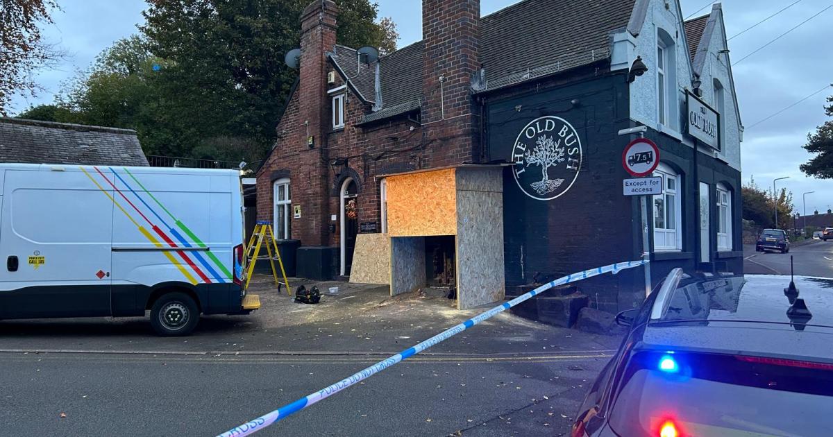 Images show the aftermath of a car having driven into the side of The Old Bush in Swindon, South Staffordshire, in the early hours of this morning (October 30).