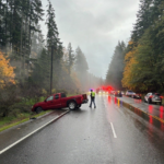 Images from the scene show the Corolla had flipped onto its side, appearing to have hit a nearby tree with enough force to split it.
