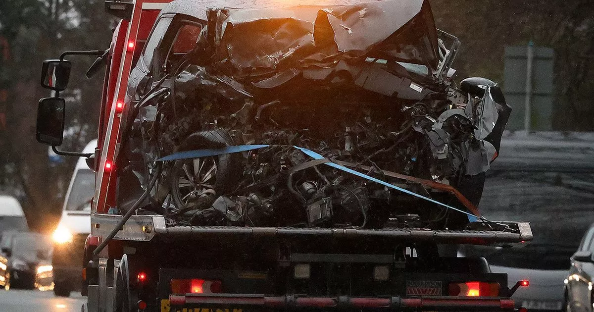 It collided with a red Seat Leon, whose bumper was ripped off in the crash and right side torn apart. Photos from the scene caught the heavy police and emergency service presence while the road was cordoned off.