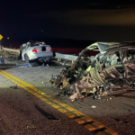 Two black cars appeared to have crashed into each other shutting down a section of the main road outside Trinity Methodist Church.