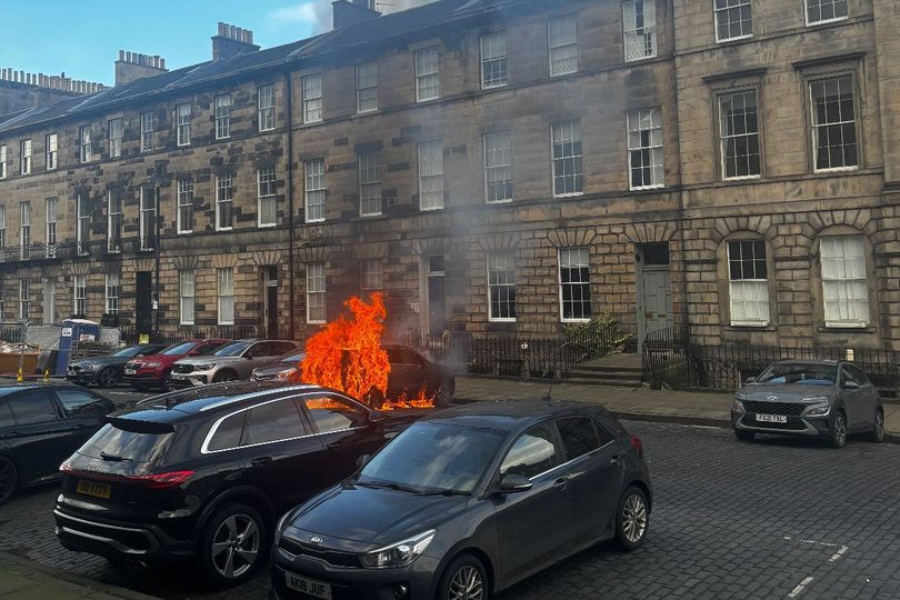 Edinburgh fire crews descend on busy city street as car goes up in flames