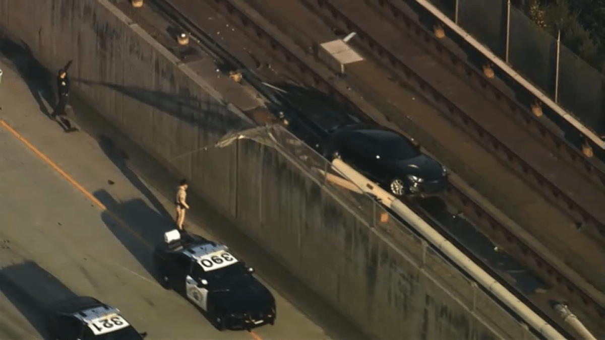 Footage from NBC Bay Area SkyRanger showed the car resting on a set of BART tracks next to I-580.