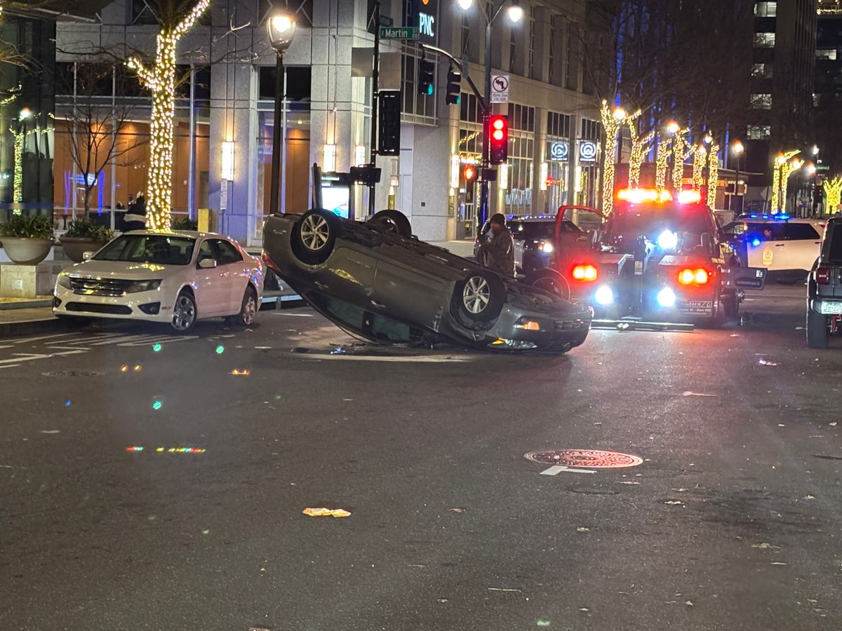 Fayetteville Street in downtown Raleigh was temporarily closed early Friday after a car overturned.