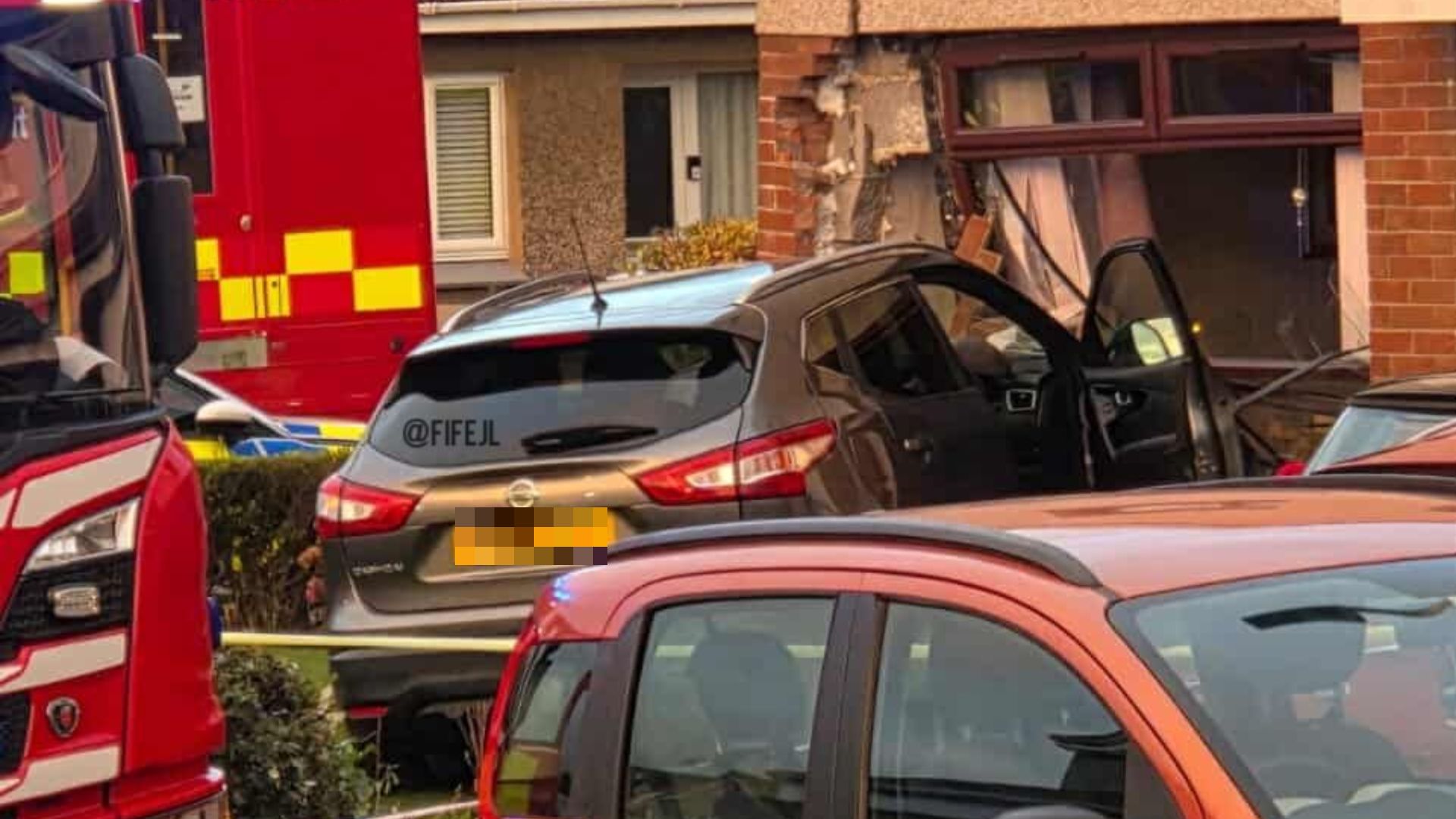 Photos from the scene show a dark-coloured Nissan smashed into the property.