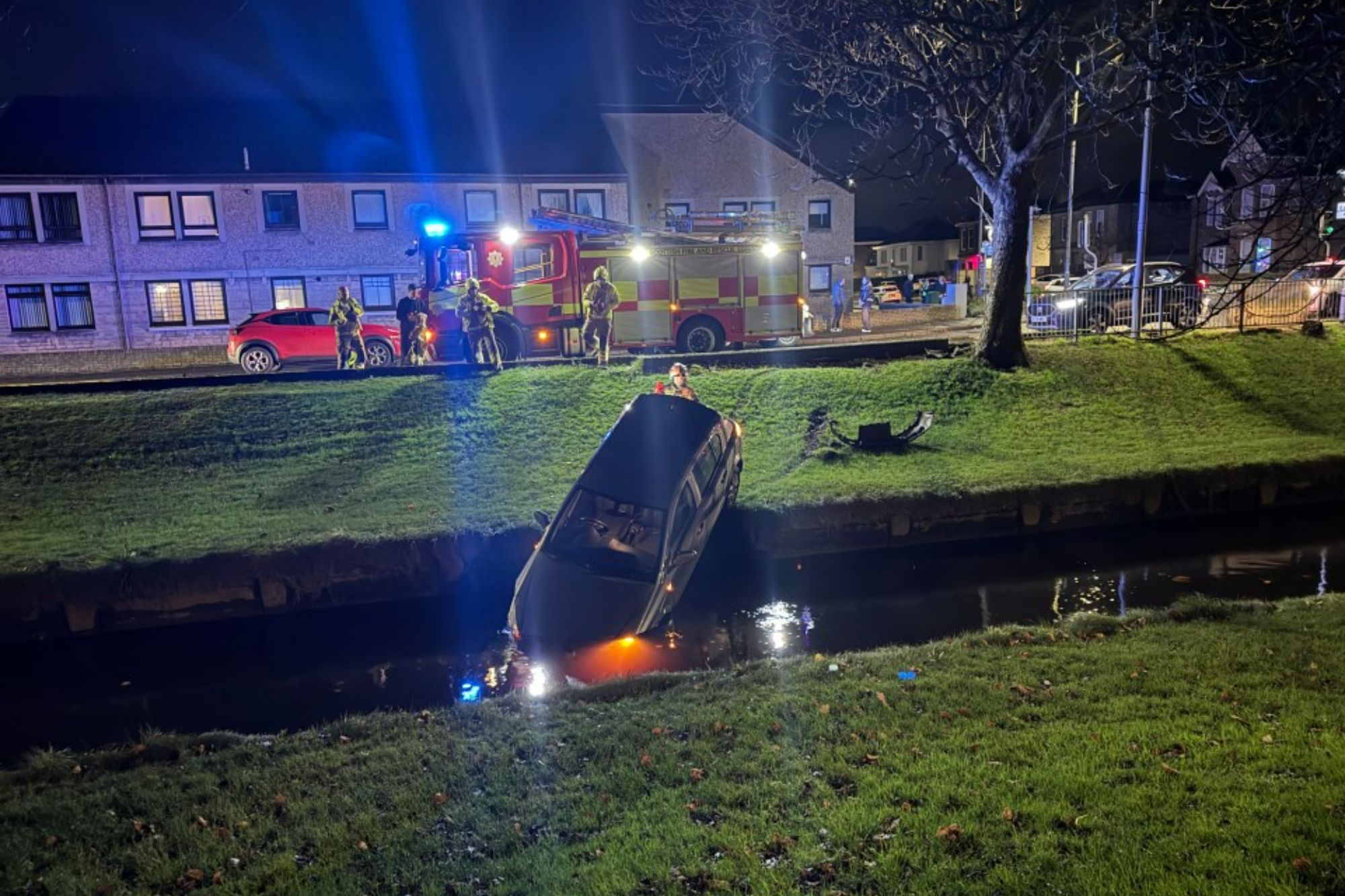 Cops and fire crews were called after reports of a car diving into Grange Burn on Abbots Road, Grangemouth.
