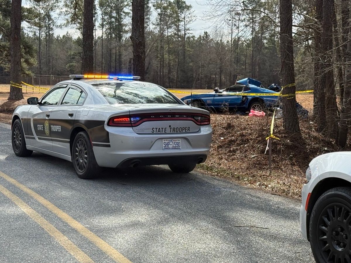 A blue car ran off the road near Fayetteville, on Bethune Drive, around 11 a.m.