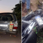 Video footage from the scene shows a badly damaged car on one the side of the highway and a truck tipped on its side in a culvert on the other side.