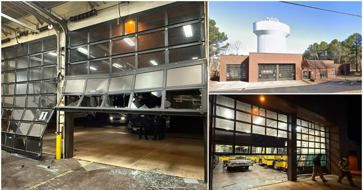 “Officers located the driver inside the fire station and observed damage to two of the building’s bay doors,” police said.