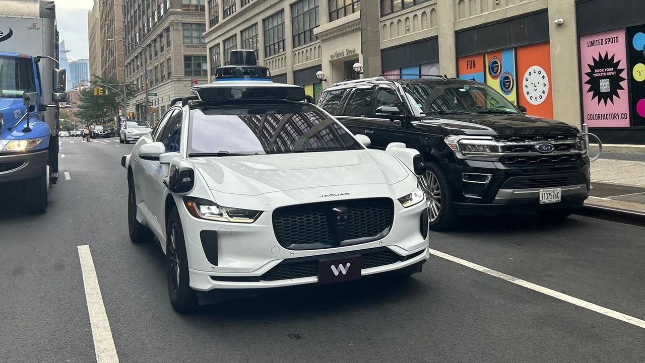 A Waymo car being driven Aug. 13 on Varick Street near Canal Street in Manhattan. Credit: Newsday / Matthew ChayesDriverless vehicles...