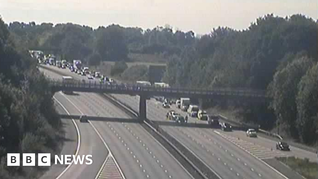 A driver has been taken to hospital after a two-car crash on the M1, which led to the motorway...