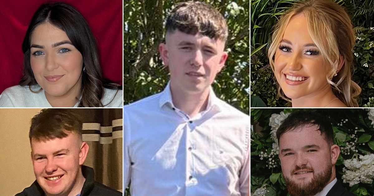 Those who died have been named as Chloe McGee, 23, from Carickmacross; Alan McCluskey, 23, from Drumconrath; Dylan Commins, 23, from Ardee; Shay Duffy, 21, from Carrickmacross; and Chloe Hipson, 21, from Lanarkshire, Scotland.
