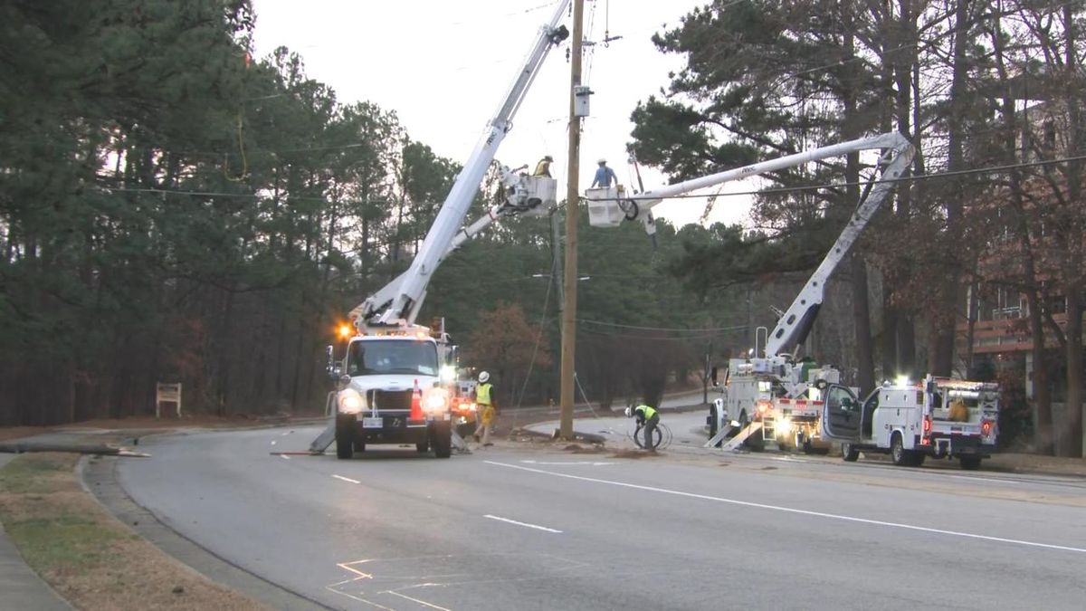 Due to its proximity to the closure, Wake Tech’s Perry Health Sciences Campus announced it would be operating on a 3-hour delay. The school said all campus entrances were blocked due to the downed power lines. Classes would start at 11 a.m.