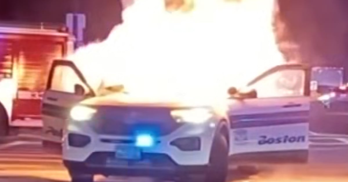 Crowd sets Boston police car on fire with fireworks  NBC News