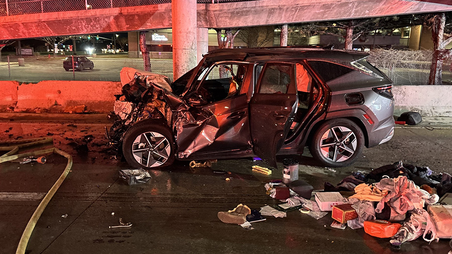 One person died after a 6-car collision on Bangerter Highway in West Valley City on Sunday, Dec. 28, 2025. (Utah Highway Patrol)