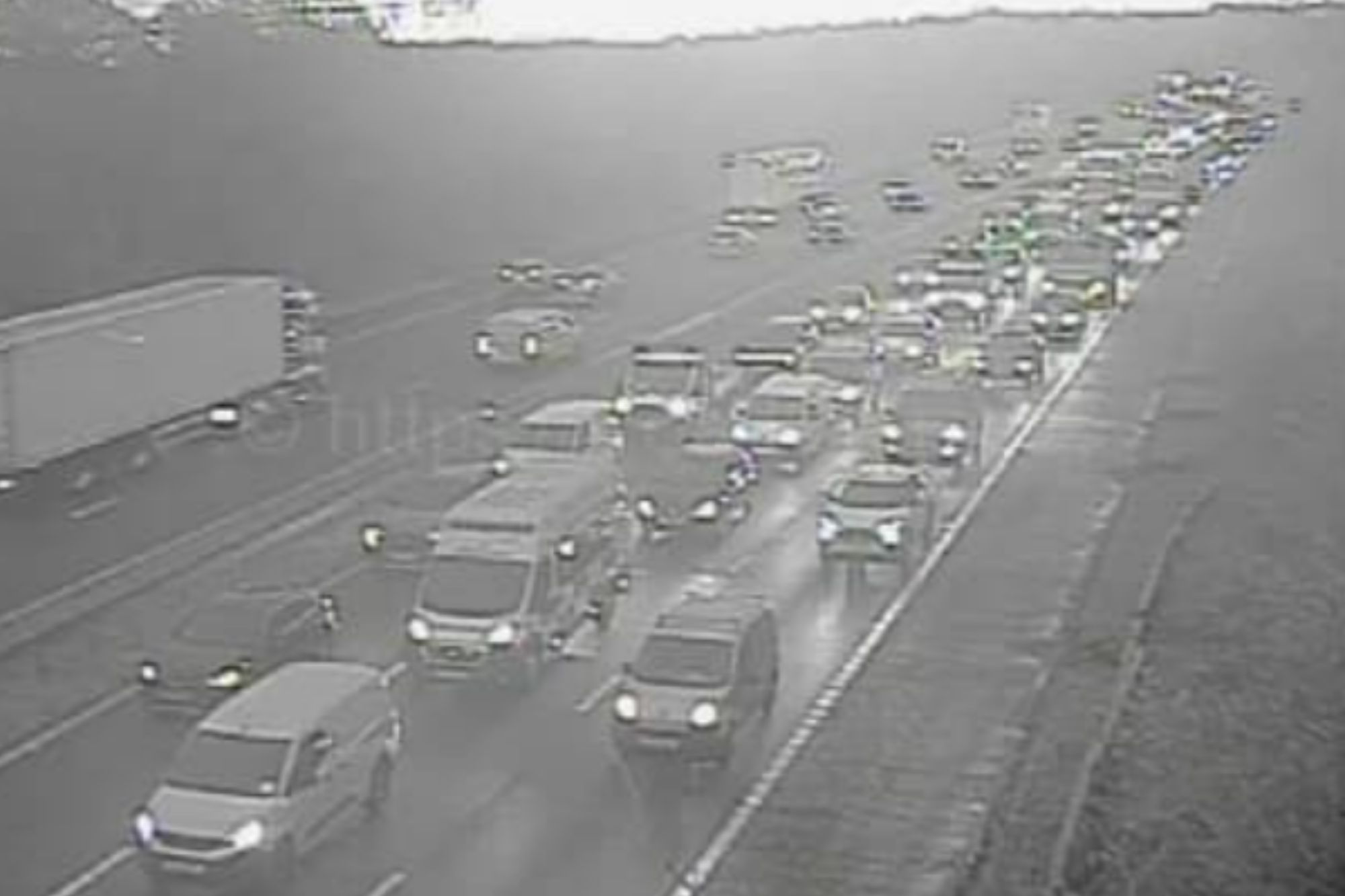 DRIVERS have been left facing 30 minute delays after a car fire shut two lanes on the M1.