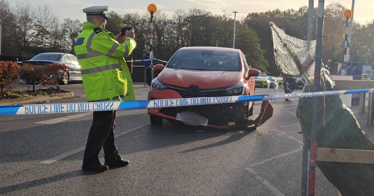 Police have confirmed that two cars and a pedestrian were involved in the crash at the Tesco store on Hamble Lane, Burseldon, at 12.33pm.