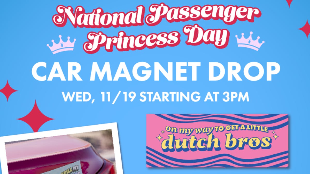 Dutch Bros Coffee is known for its random sticker drops and giveaways, and in honor of the shop’s unofficial National Passenger Princess Day on Nov. 19, it is offering customers another special freebie.