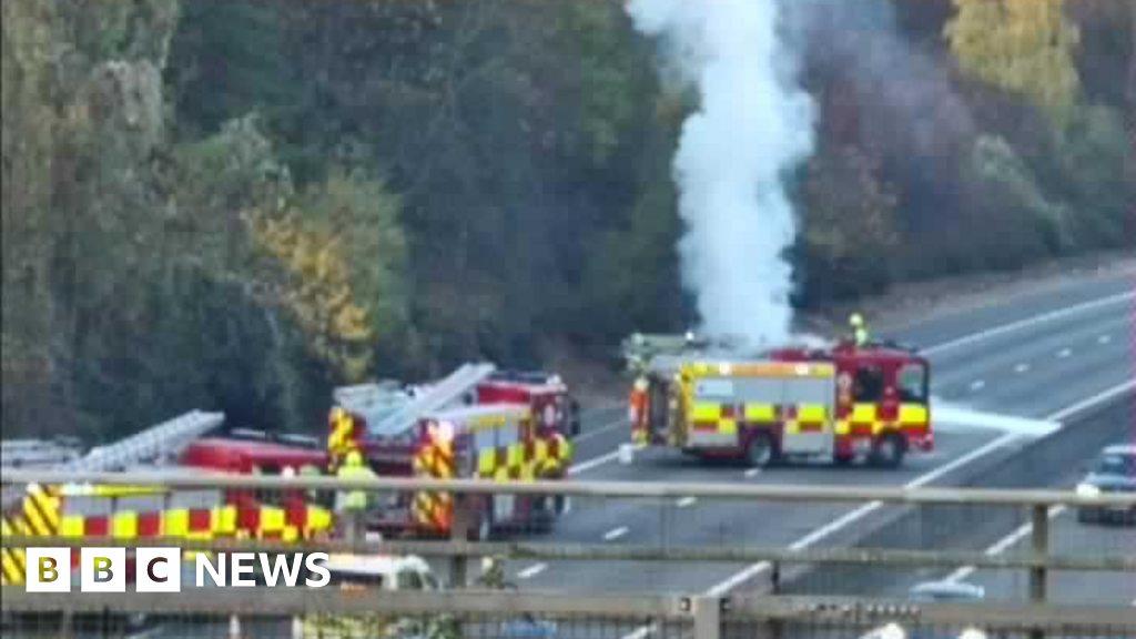 National Highways said Essex Fire and Rescue Service was at the scene and traffic camera images showed at least three crews dealing with the fire.