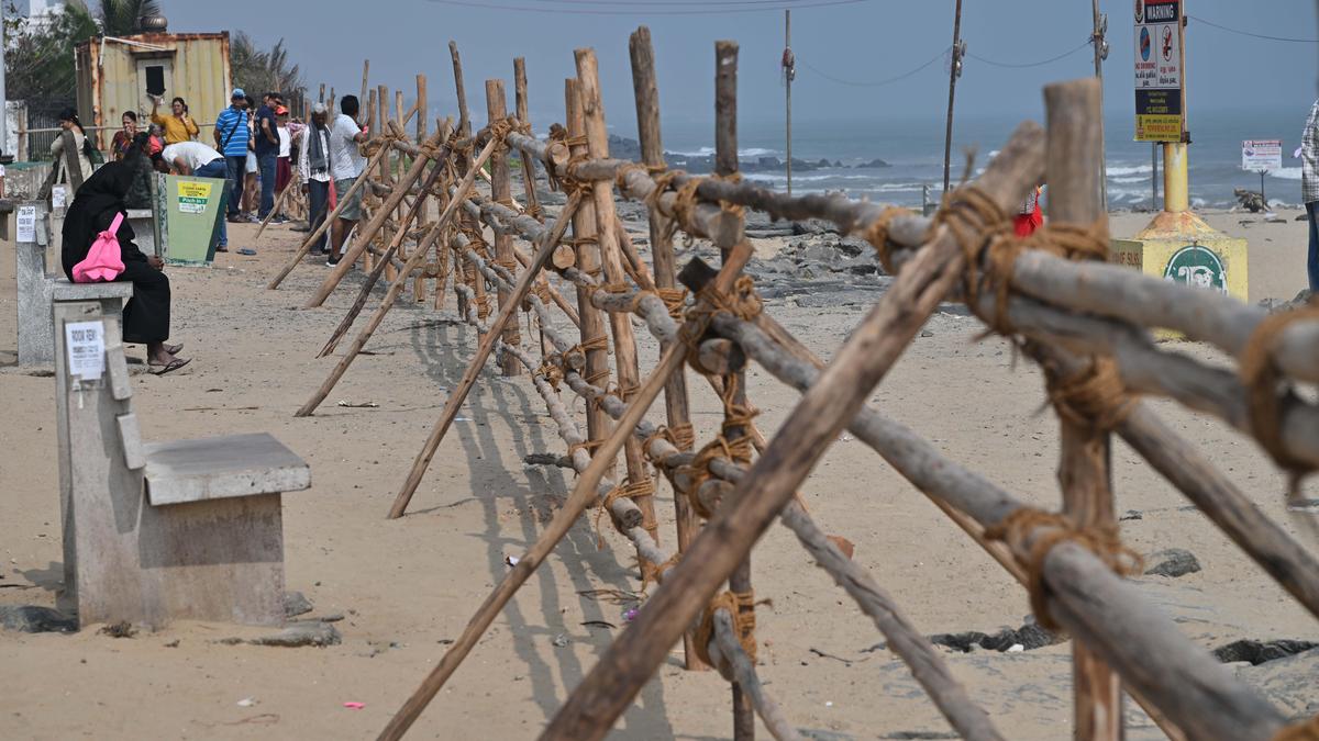 Fences have been erected along Beach Road in view of the New Year celebrations. | Photo Credit: KUMAR SS