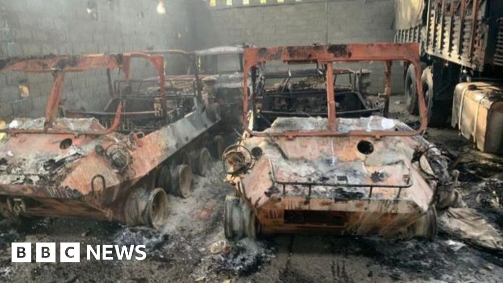 Pictures from Fuerte Tiuna, a huge military complex where top government officials live, show bombed out buildings and charred, smouldering cars.