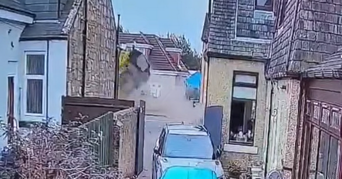 CCTV footage taken from a property nearby showed the moment the car flew through the air before it crashed into a neighbour's garden.