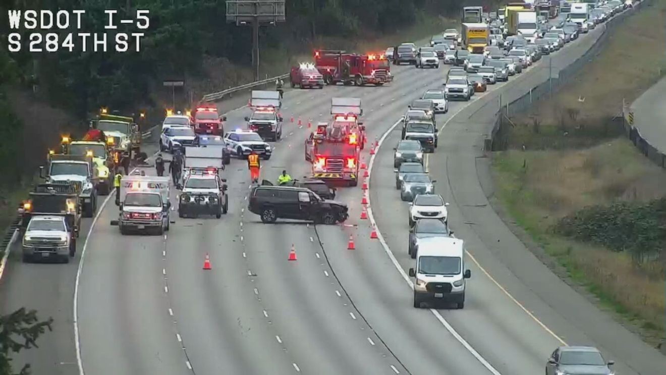 SEATTLE — A collision involving a Washington State Department of Transportation (WSDOT) work truck and three cars has caused significant traffic disruptions on northbound Interstate 5 near South 272nd Street in Federal Way on Thursday afternoon.