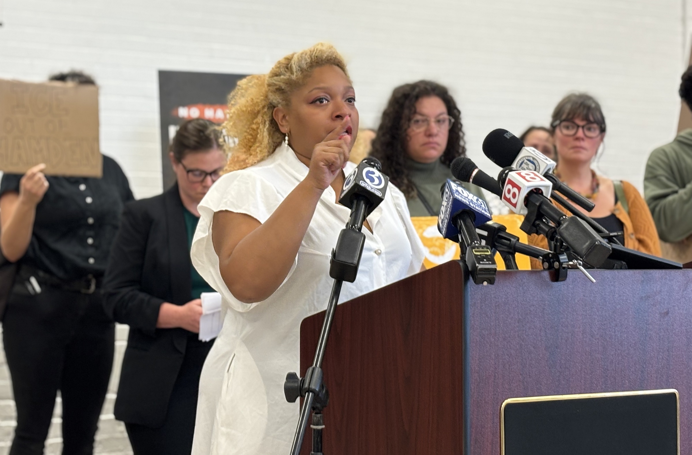 Wednesday afternoon’s presser was also attended by Hamden Legislative Council President Dominique Baez and New Haven Mayor Justin Elicker, among a host of state legislators, pastors, and immigrant rights advocates.