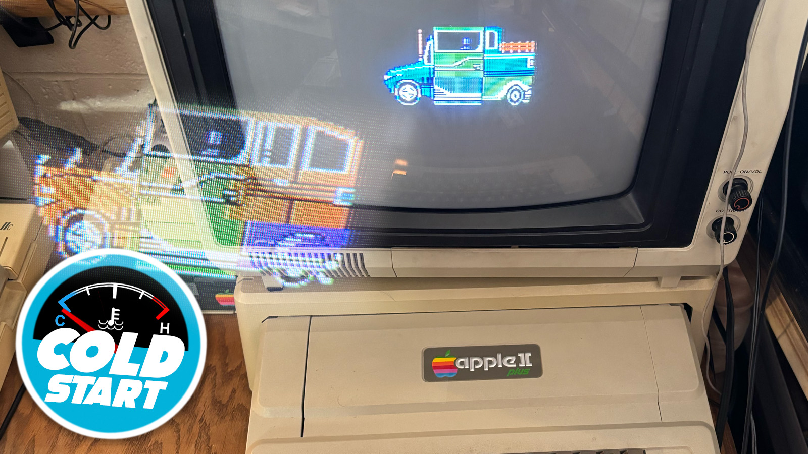 You see, an old Apple II uses a 6502 processor, and those CPUs can only address up to 64K at a time. I have some Apple IIs with 128K, but they have to bank-switch that memory, and, besides, when using BASIC, I only have access to 64K. Even worse, when you’re running BASIC, you don’t have access to the full 64K, because the computer needs memory to make things work. The Disk Operating System (DOS) has to get loaded into memory, the BASIC language itself and other ROM routines need to get loaded into main memory, there’s no separate video RAM so the graphics screens need to have memory space – by the time everything gets loaded in, there’s maybe, what 32K or less of free memory for the BASIC program and data like all those car part graphics I made!