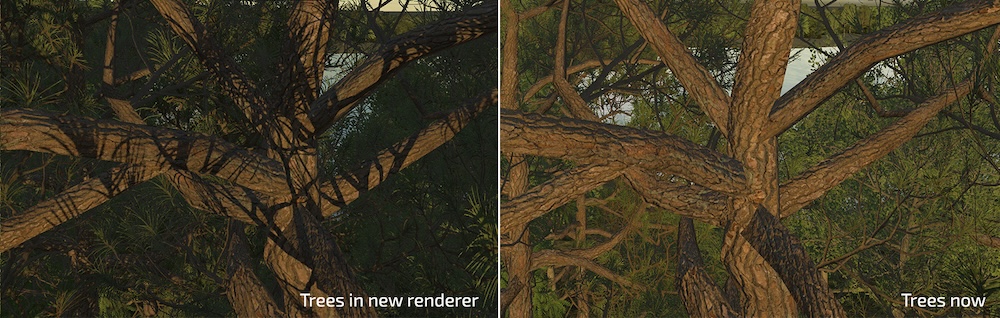 The new rendering engine is making tremendous progress every day. One of the more visual improvements that the team has made recently will have a substantial impact on the overall scene. You may or may not have noticed it, but the trees in iRacing do not receive shadows. This is because the technical system powering the tree rendering is not integrated into the core rendering. The new rendering engine has solved this, and trees receive shadow. The visual improvement is substantial, transforming the appearance of the world.
