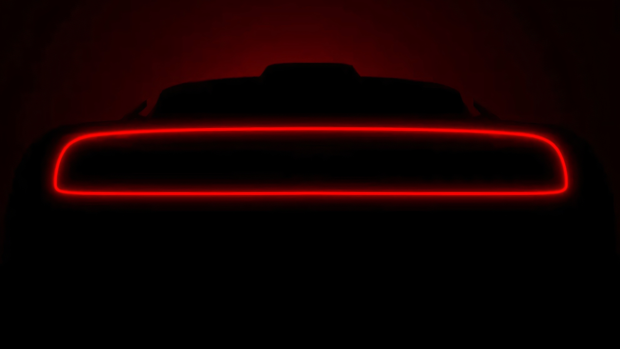 The brief clip offers a shadowy glimpse of the rear, revealing the LED taillight strip along with a few hints of what’s to come. You can just make out small side winglets and a roof-mounted air scoop.