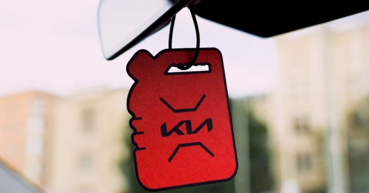 Kia has a new idea. So you don’t miss the smell of gasoline too much when you trade in for its new EV, Kia is giving away free gas-scented air fresheners.