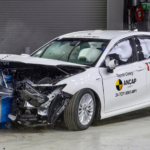 #watch | Delhi | A car crashed on the Delhi-Noida-Delhi (DND) flyway early morning today. No casualties were reported in the incident pic.twitter.com/aPVaAxcoMg