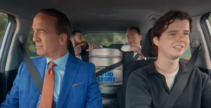 A minute-long teaser for the ad shows Post Malone, Peyton Manning, and Shane Gillis sharing a car ride en route to a wedding, during which Manning is seen expressing his appreciation for the nü-metal staple.