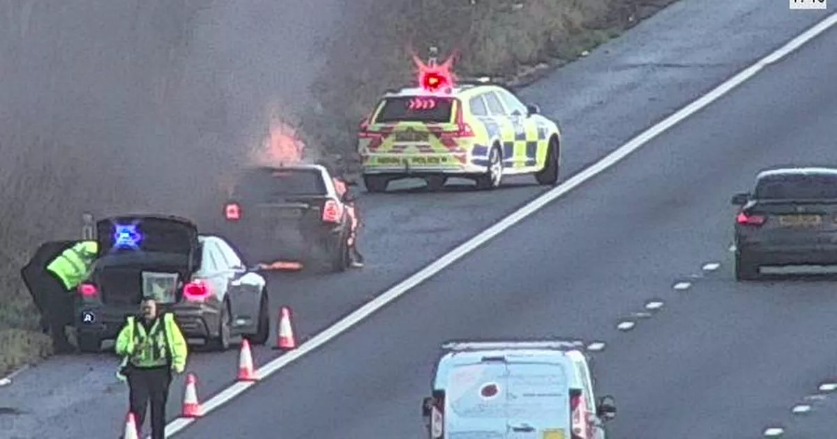 Part of the M4 in Bridgend shut on Saturday morning due to a car fire. Two lanes were closed causing queueing traffic eastbound from J37 A4229 (Pyle / Porthcawl) to J36 A4061 (Bridgend / Sarn Service Area), according to traffic monitoring service Inrix.