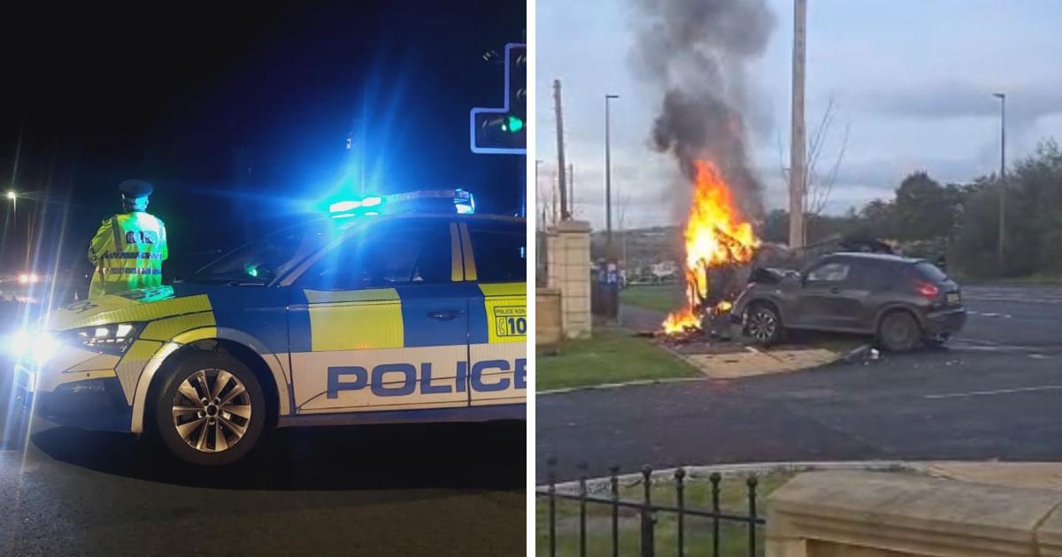 Videos seen by the Lancashire Telegraph show two vehicles at the side of the road, with flames and large plumes of smoke coming from one of the vehicles.