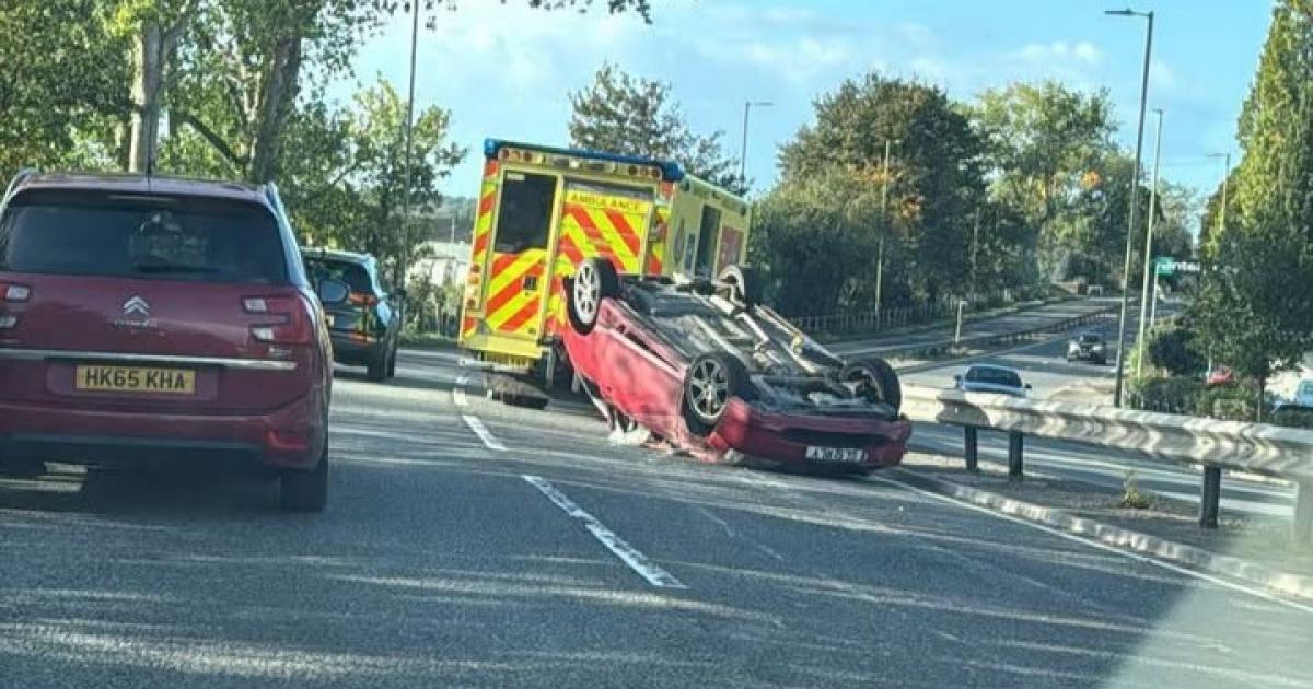 Ambulance and police cars were seen on the scene at Totton Bypass just after 9am, as a red car had overturned on its roof in the right hand lane of the A35 towards the New Forest.