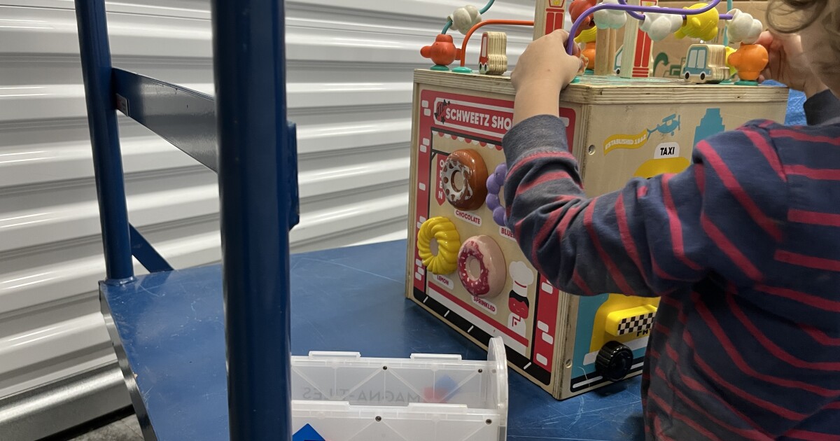 Since they lost their apartment in June, they’ve kept the belongings of their old one-bedroom unit neatly stored in a 10-by-10-foot space — bins of clothing, a refrigerator, a mattress. Their 4-year-old, A, plays with a wooden activity cube, a familiar toy he hasn’t played with in a while. (We’re using Wayne’s first name and A’s first initial only to protect their family’s privacy.)