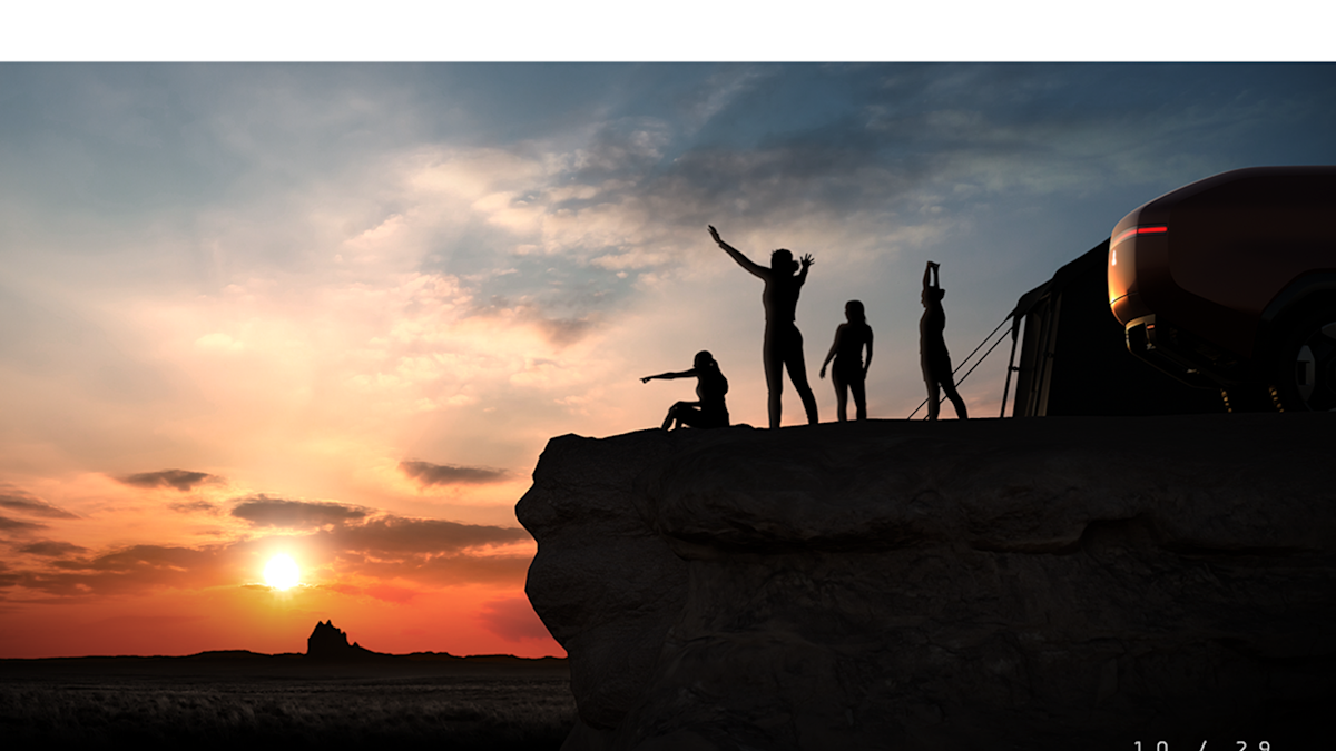 The teaser doesn't reveal much about the car, with only the rear end visible at the edge of the image. The SUV appears to be tailored towards off-roading, with chunky-looking tires and lots of ground clearance. A simple LED light bar seems to stretch across the rear of the vehicle, while the roofline dips down after the rear wheels.