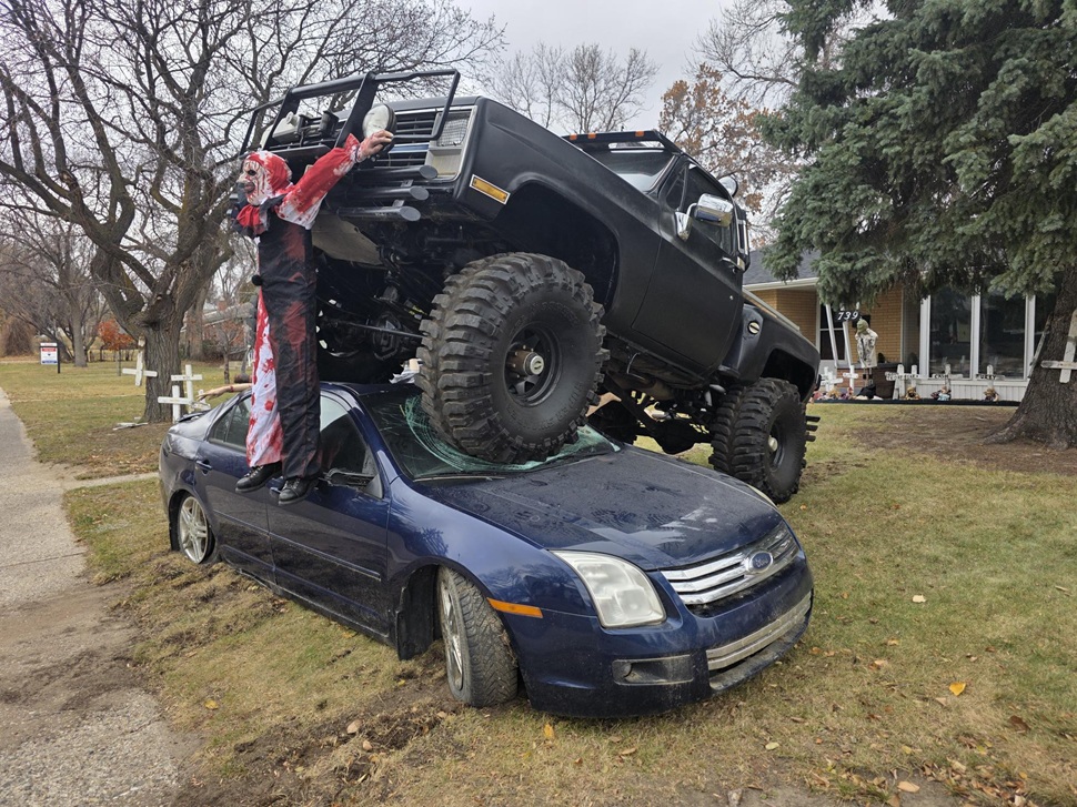 A Swift Current resident is reviving a Halloween tradition that once thrilled his neighbourhood — and this time, it involves a monster truck crushing a car right on his front lawn.