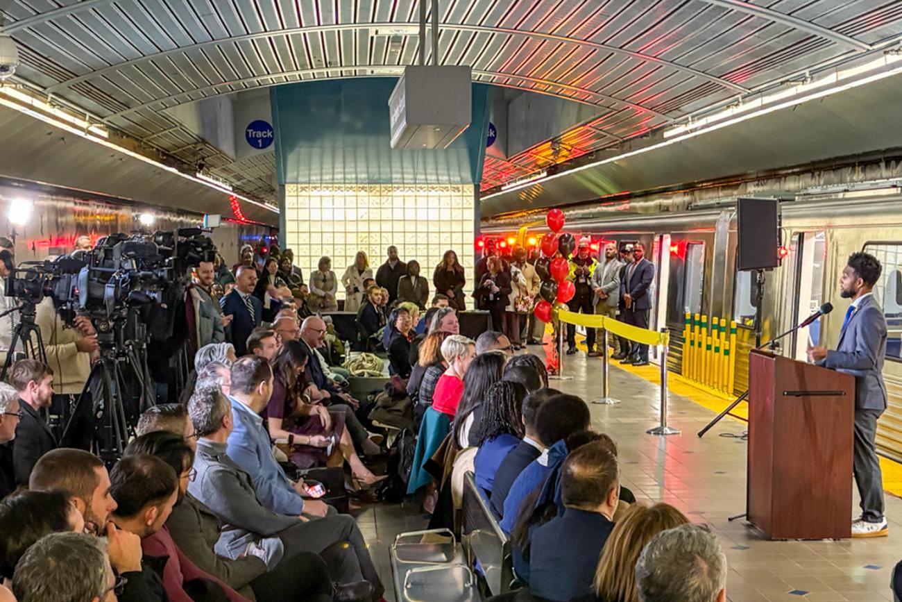 Lisa Ishii, senior vice president for operations at Johns Hopkins Health System, spoke at the ribbon cutting, held at the Johns Hopkins Station. Mayor Brandon Scott; MTA acting secretary Kathryn Thomson; MTA administrator Holly Arnold; and other federal and state officials also gave remarks.