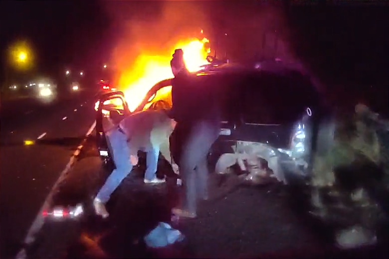 WALLA WALLA – A 32-year-old female driver was rescued from a burning vehicle after a collision on New Year’s Eve, thanks to the quick actions of both off-duty and on-duty law enforcement and fire personnel in Walla Walla.