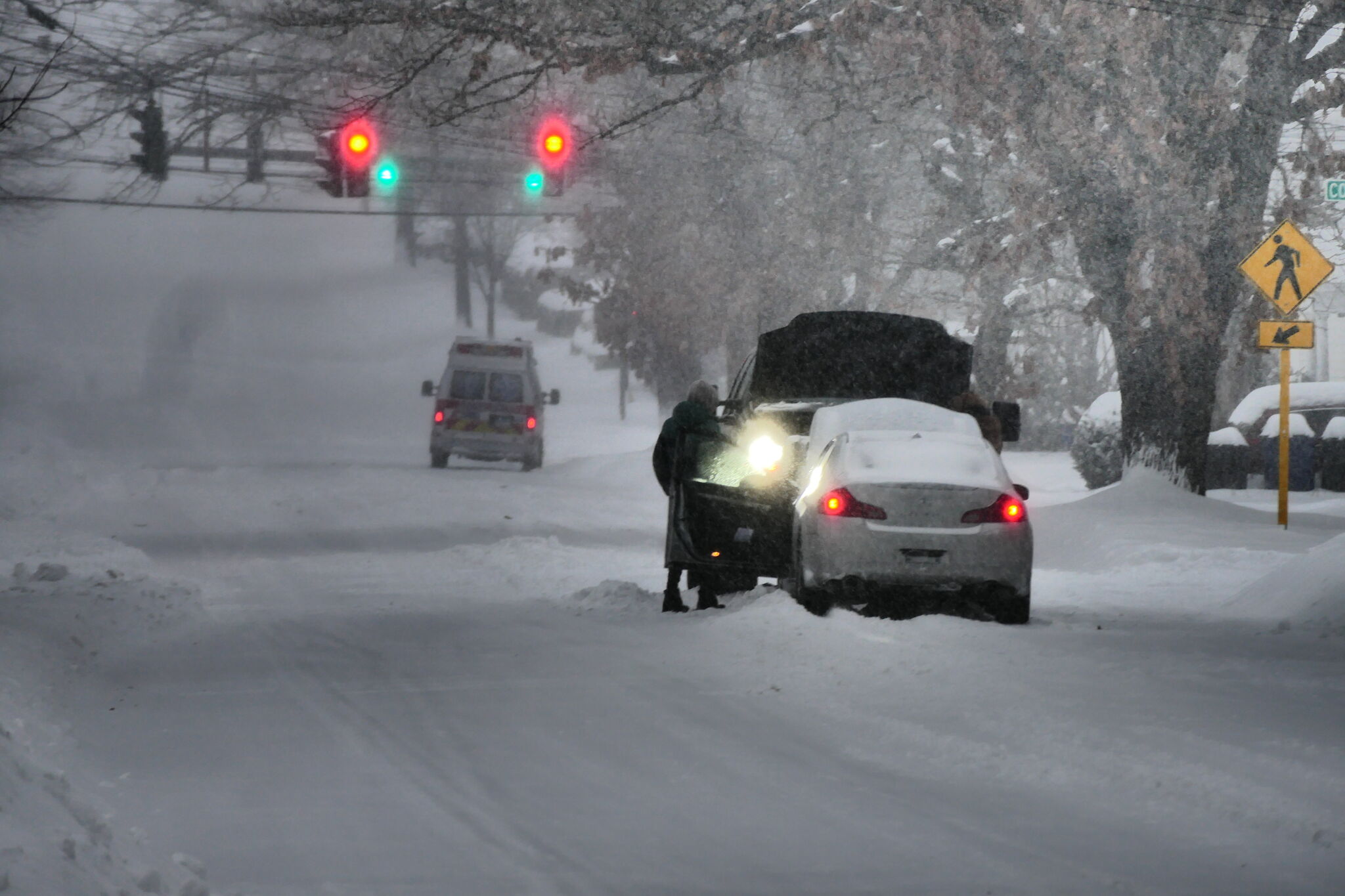 A disabled motorist receives help along Fountain Street in New Haven Sunday, Jan. 25, 2026.