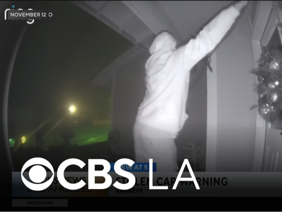 Video from an Anaheim Hills home shows the moments when an unidentified person takes a woman’s Ford F-150 Shelby Raptor from her driveway. The footage, which was captured by two security cameras on the property, shows another suspect holding what looks to be a wire above his head as he stands near the front door.