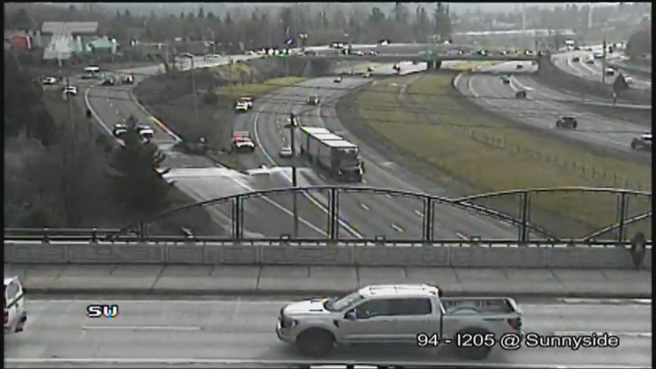 The crash was reported at about 12:45 p.m. near milepost 15.
